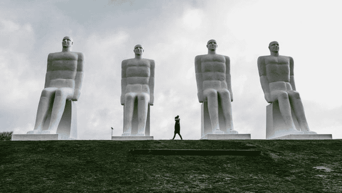 De beelden zijn in 1994 gemaakt door beeldhouwer, schilder en graficus Svend Wiig Hansen ter gelegenheid van het honderd -jarig bestaan van de stad. In de zomermaanden zijn de beelden de belangrijkste reden om Esbjerg te bezoeken. Alle andere seizoenen is het hier stil, hoor je hoogstens het zoeven van autobanden over het natte wegdek, op weg naar de boot richting Fanø.